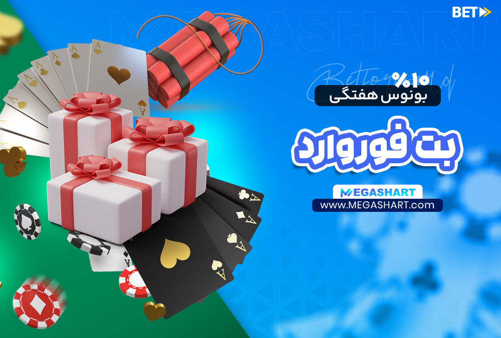 این پست درباره 10% بونوس هفتگی بت فوروارد BetForward است. در سایت شرط بندی بت فوروارد BetForward با خیالی آسوده در کازینوی زنده، ماشین اسلات و یا انفجار بازی کنید در صورتی که در طول هفته حداقل 3 میلیون ریال پیش بینی ناموفق داشته باشید بت فوروارد در هر هفته تا سقف 10 درصد از مجموع مبلغ پیش بینی ناموفق را به عنوان بونوس نقدی به شما هدیه خواهد داد. در این پست به شما بونوس هفتگی سایت بت فوروارد را شرح می دهیم. با ادامه این پست با سایت مگاشرط همراه باشید.